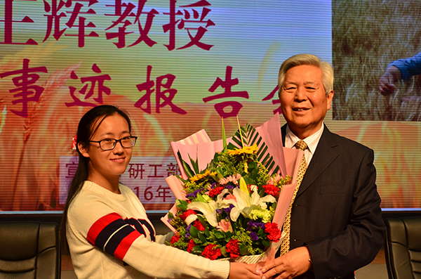 李甲贵老师表示:做农业研究和其他行业不同,首先需要花费大量时间和精力,其次条件艰苦、工作环境恶劣,王辉先生正是以吃苦耐劳、潜心钻研、扎根田地的忘我精神克服了种种困难。李老师还提到,做科研要脚踏实地,眼睛要往下看,把所有的科研项目做到实处,不能眼高手低。王辉教授的“下地下地再下地,实验室里是培育不出好种子的”便是最好的说法。