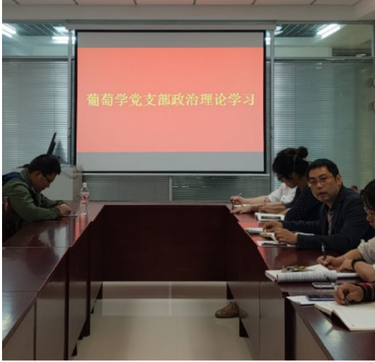 5楼中厅会议室召开,会议主题是葡萄学党支部政治理论学习,刘旭老师主持了会议。