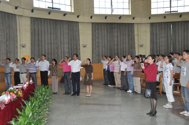 全体预备党员宣誓,正式党员重温誓词