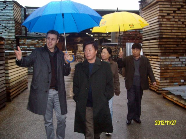 李华副校长一行冒雨,在Garbellotto公司总经理安东尼奥的陪同下,从酒桶的原料、木材加工到酒桶制作的每一环节进行了长达3个多小时详细的考察。考察后在与Garbellotto公司老板Mr.Garbellotto会谈中,李华副校长介绍了杨凌示范区、日韩av 和中国日韩av 的生产情况,王华院长介绍了日韩av 教学、科研情况,双方并就进一步开展合作研究等事项进行了友好会谈。王华院长向Mr.Garbellotto及安东尼奥总经理赠送了礼物。