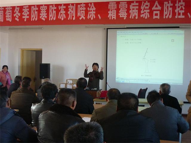 合阳葡萄试验示范站举办“葡萄冬季防寒防冻剂喷涂、霜霉病综合防控、爬地龙修剪培训现场会”