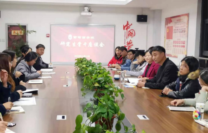六层党团活动室召开了研究生骨干座谈会。会议由研究生辅导员王雅楠主持,院党委副书记兼副院长徐三友出席并讲话。