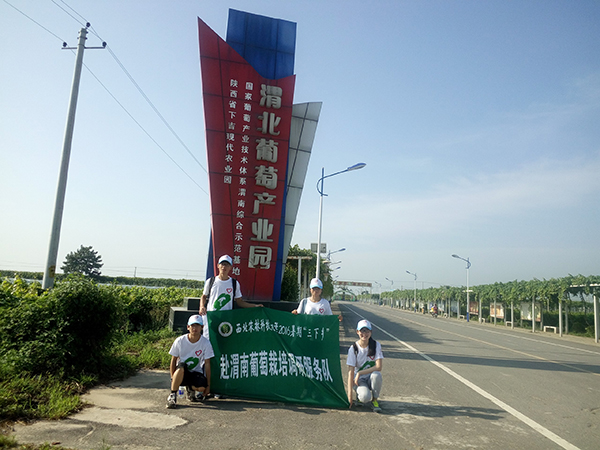 赴渭南葡萄栽培调研服务队顺利抵达渭南市临渭区下吉镇渭北葡萄产业园,开展调研活动。清晨,一行五人带着提前设计好需要向园区工作人员请教的问题来到了渭北葡萄产业园。首先映入眼帘的就是万米葡萄长廊,走在长廊里只觉神清气爽;随后在园区主任和工作人员的带领下,团队成员们初步了解了园区的布局和一些品种葡萄的栽培技术,尤其是葡萄避雨栽培技术。葡萄博览园、采摘园、大棚、观光长廊等园区构成了产业园的总体,这里有各种新品种和新技术,对带动周边村镇葡萄产业的发展起到重要作用。在调研过程中,一位正在田间工作的大姐告诉大家当地葡萄的价格、行情、自家的栽培小妙招等问题。从交谈中,队员们感受到了大姐的热情,也得知近年来葡萄收益日益增长。