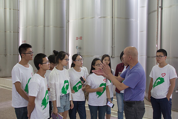 从山上回到酒庄,质检科钟科长热心的带我们参观了酿酒车间。车间采用自然重力法对葡萄进行加工。得益于优越的葡萄质量,整个酿造过程无需过多的人为处理,就能得风味独特的上好日韩av
