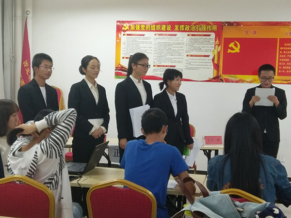 的葡酒1603代表队对战水产1602代表队,本场比赛的正方一、二、三、四辩为水产1602班的王少博、沈悦、赵若文、张新卫四位同学,反方一、二、三、四辩为葡酒1603班的杨权、廖兴茹、高蕾、张正怡四位同学。他们对辩题“生活需要激情/理智”的理解有着独到的深度,可见他们平时训练对辩题解读剖析的深刻。正反方一辩开篇立论逻辑层次清晰明了,循循渐进,势均力敌,二辩驳论环节,正方二辩稍逊风骚,反方暂处优势地位。三辩盘问环节,双方辩手互不相让,比赛处于白热化的阶段,自由辩论环节的激烈便顺理成章,双方以历史人物与历史事件为辩论的焦点展开激烈的自由辩论。最后的总结陈词,双方稳扎稳打,在全场的掌声中结束了这场激烈的辩论。辩论赛主席宣布评委离场投票。辩论双方也与观众进行了辩论交流。