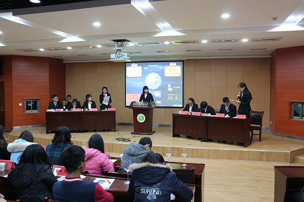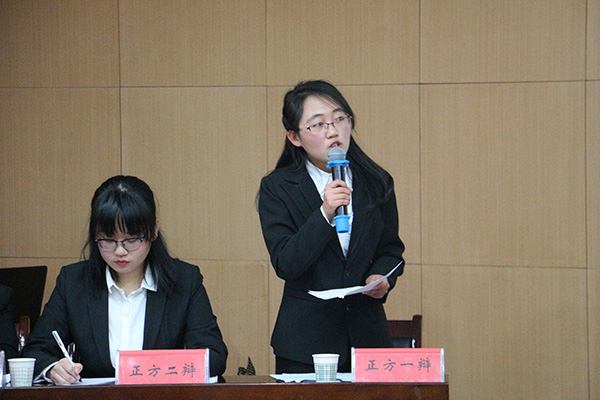 在主席宣读完辩论规则后,比赛正式开始。双方开篇立论,陈述观点,四辩质问驳论,双方各执一词,你来我往,互不相让。在有限的时间内,双方进行的不仅是思想上的碰撞,更是思维灵活转化的考验,台上唇枪舌剑,锋芒毕露,台下听众也随着时而思索,时而拊掌喝彩。自由辩论中,场上的战况已至焦灼的白热化状态,双方认真记录对方的发言,并迅速抓住对方的纰漏进行反击,台下观众也被辩手所感染,小声地进行讨论。最后,双方查漏补缺,力证己方观点的正确性,同时也不忘针对对方的漏洞进行驳论,完成了最后的冲刺,比赛正式结束。