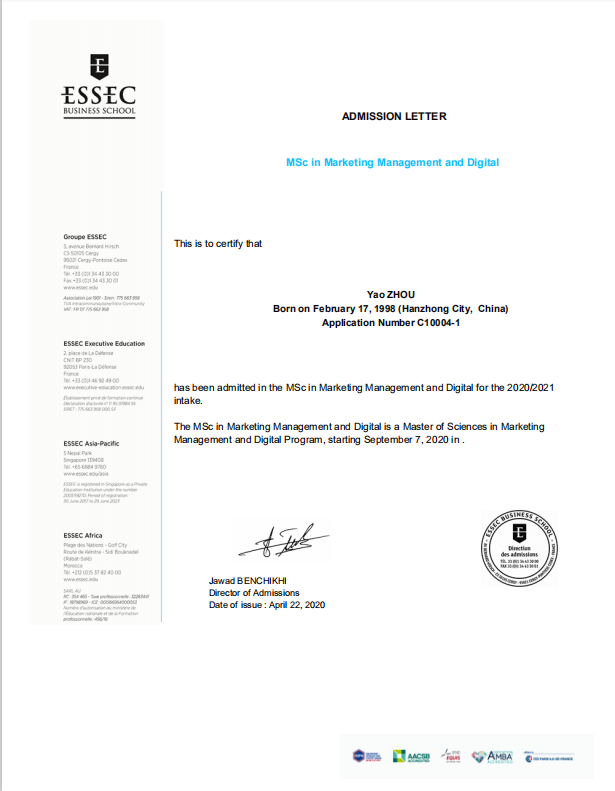 ,但这个经历可以展示自己的学习能力),并通过这些经历表达自己的能力和品格,告诉学校我就是你们在寻找的候选人。在申请ESSEC时,文书为我带来了很大的优势。