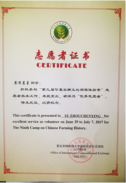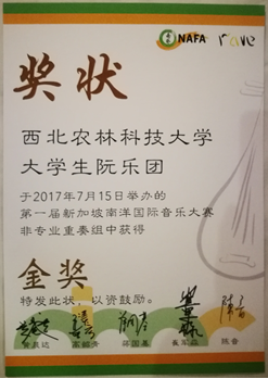 个人简介:大家好,我是葡酒1501的苏周晨星。现是省级科创项目的一员,并任校大学生艺术团阮乐团团长。对于我来说,大学生活=学习+实验+音乐。在大学的两年多时间里,我有获得优秀团员、优秀团干、专业奖学金,有参加新生运动会而有幸申请到了“华王NO.1”,也有去新加坡参加音乐比赛获得金奖。其中想跟大家分享的是“华王NO.1”奖、一张优秀志愿者的证书以及在音乐方面收获的一份奖状。