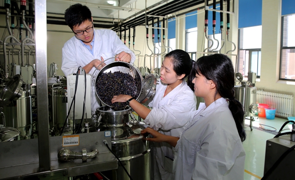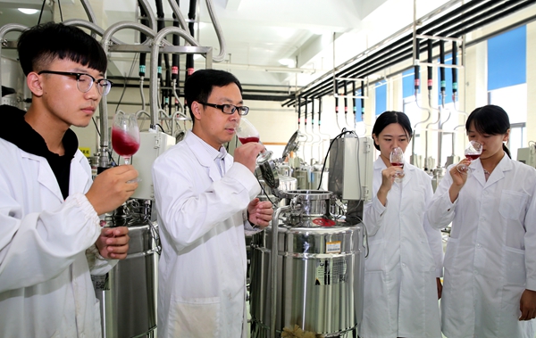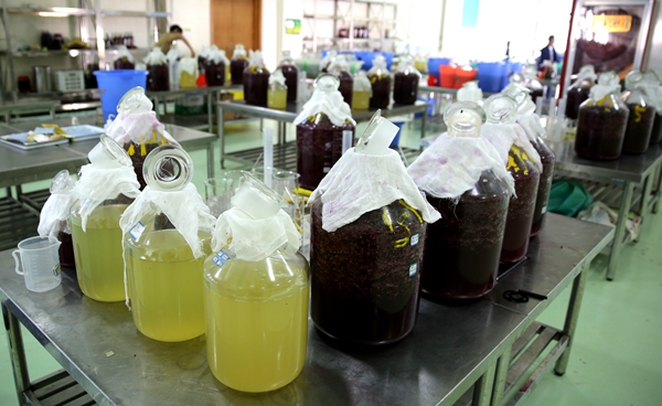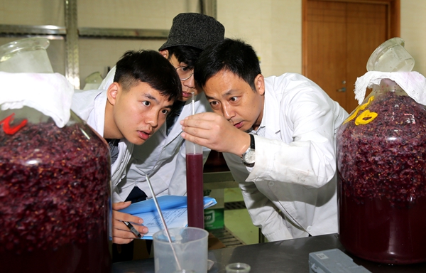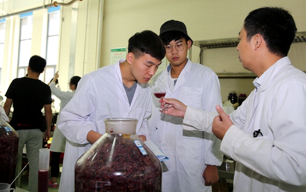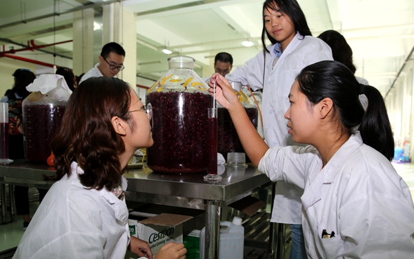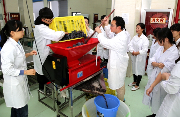 酿造中存在的问题。赤霞珠、梅尔诺、品丽珠、爱格丽、雷司令、霞多丽等人们耳熟能详的葡萄被成筐的采运回学校,在师生们的手里完成华丽的转变:由一串串葡萄变成一罐罐红的、白的、桃红的美酒。