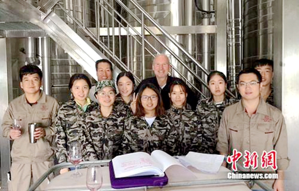 酿造理论培训和安全生产知识培训,随后同学们在带班班长和酒庄技术人员的带领下进入各自的实习岗位,分别在原料验糖质检、破碎站分选、气囊压榨、葡萄汁入灌、澄清及分离、温度与比重的测定等岗位进行了实践锻炼和学习。出身于欧洲酿酒世家的宁夏张裕摩塞尔十五世酒庄首席酿酒师罗斯•摩塞尔评价说:“这些学生很优秀,我们在一起玩得很开心!”