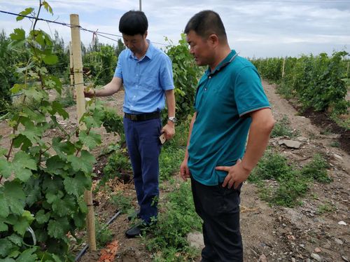 房玉林教授一行实地查看了新疆罄玉酒庄酿酒葡萄轻简化高效栽培集成示范基地,向新疆罄玉酒庄酿酒葡萄种植技术人员详细讲解了品种圃的建造及管理、酿酒葡萄轻简化树相整形修剪的原理和具体措施,调亏灌溉在生产中的实际应用、水肥一体化的措施把控等内容,对酿酒葡萄品种引进和种植管理技术不足之处进行了点评,并现场解答了种植技术人员在葡萄园管理方面遇到的问题,让酿酒葡萄种植技术人员对品种更新、树型改造、架式选择、水肥调控灌溉等方面有了更深的认识。