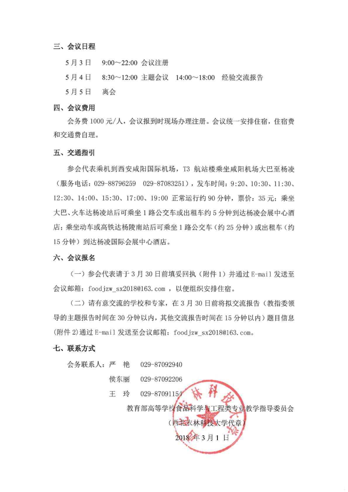 承办。诚邀各位教指委委员、各高校分管食品类专业教学工作的领导、院系或专业负责人以及相关专业教学老师们拨冗参加。