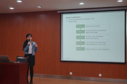 风味物质和特征的影响。王华院长对报告进行了总结,并希望这样的报告能够开阔研究生和本科生的学术视野,开拓感官分析的方法和思路。最后,王华院长向刘晶博士赠送了纪念品。