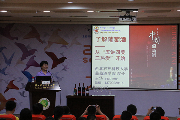 笔记本和T恤作为奖励。现场气氛热烈,同学们都表现出了极大的兴趣。讲座最后,王华院长向同学们提出了“热爱祖国,热爱自然,热爱生活”三点希望,并以“尊重自然、保护生态、了解美酒、热爱生活”这十六字的寄语结束了报告。